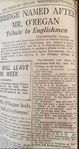 கிண்ணியா ஒரிக்கன் பாலநிர்மாணம்இ கிண்ணியா துறைக்கான பாதைச் சேவை என்பன இவரது பொதுச்சேவைகளுள் சிலவாகும். ஓரிக்கன் பாலம் திறப்பு விழாவின் போது அப்போதைய அமைச்சர் ஜி.ஜி.பொன்னம்பலம் பிரதம அதிதியாகக் கலந்து கொண்டிருந்தார். இவ்வைபவத்தில் வைத்தே பொதுமக்களின் நலனில் அதிக அக்கறை காட்டிச் செயற்பட்ட அப்போதைய உதவிஅரசாங்க அதிபரான ஆங்கிலேயர். ஒ ரீகனின் பெயரை இப்பாலத்திற்கு இவர் சூட்டினார்.
