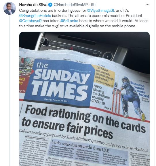 உயரும் விலைகளைக் கட்டுப்படுத்த அத்தியாவசிய உணவுப் பொருட்களுக்கு ஒரு ரேஷனிங் (கூப்பன்) முறை அரசாங்கத்தால் திட்டமிடப்பட்டுள்ளதாக தி சண்டே டைம்ஸ் செய்தித்தாள் தெரிவித்துள்ளது.