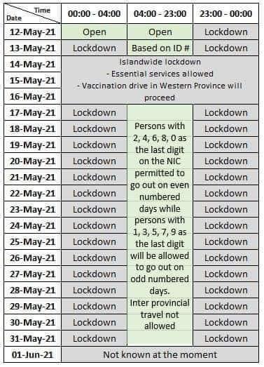 #2 - 13ஆம் திகதி இரவு 11மணிமுதல் 17ஆம் திகதி திங்கட்கிழமை அதிகாலை 4 மணிவரை மூன்று நாட்களுக்கு நாடளாவிய ரீதியில், வீட்டை விட்டு வெளியேற முடியாத வண்ணம் பயணத்த தடை விதிக்கப்பட்டுள்ளது. (அத்தியாவசிய சேவை, தேவைகளுக்கும், கொரோனா வைரஸ் தடுப்பூசியை ஏற்றிக்கொள்ள செல்​வோருக்கும் அந்த தடை பொருந்தாது.)