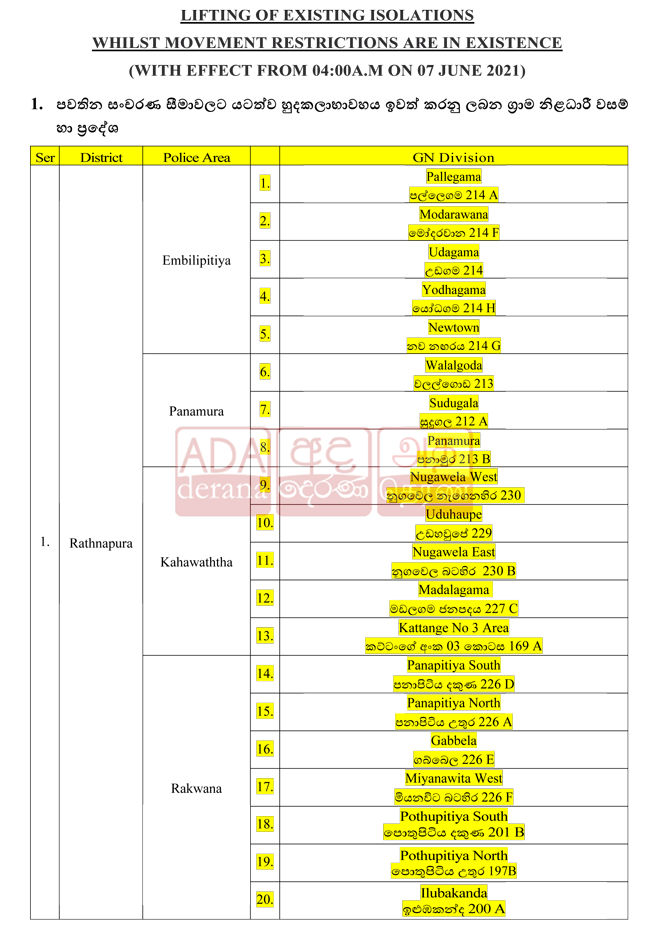 11 மாவட்டங்களை சேர்ந்த 77 கிராம உத்தியோகத்தர் பிரிவுகள் தனிமைப்படுத்தலிலிருந்து விடுவிக்கப்பட்டுள்ளதாக இராணுவத் தளபதி ஜெனரல் சவேந்திர சில்வா தெரிவித்தார்.