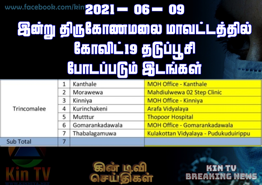 இலங்கை ராணுவம் மற்றும் சுகாதார அமைச்சகம் புதன்கிழமை (09) செயல்படும் தடுப்பூசி மையங்களின் விவரங்களை வெளியிட்டுள்ளன. கோவிட் தடுப்பூசியின் முதல் டோஸ் இந்த மையங்களில் நிர்வகிக்கப்படும்.