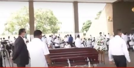 பிரதமர் மஹிந்த ராஜபக்ஸ உள்ளிட்ட அமைச்சர்கள், முன்னாள் பாராளுமன்ற உறுப்பினர்கள் என பலரும் பூதவுடல் தாங்கிய பேழையை பாராளுமன்ற கட்டடத் தொகுதிக்கு எடுத்துச் சென்றனர்.